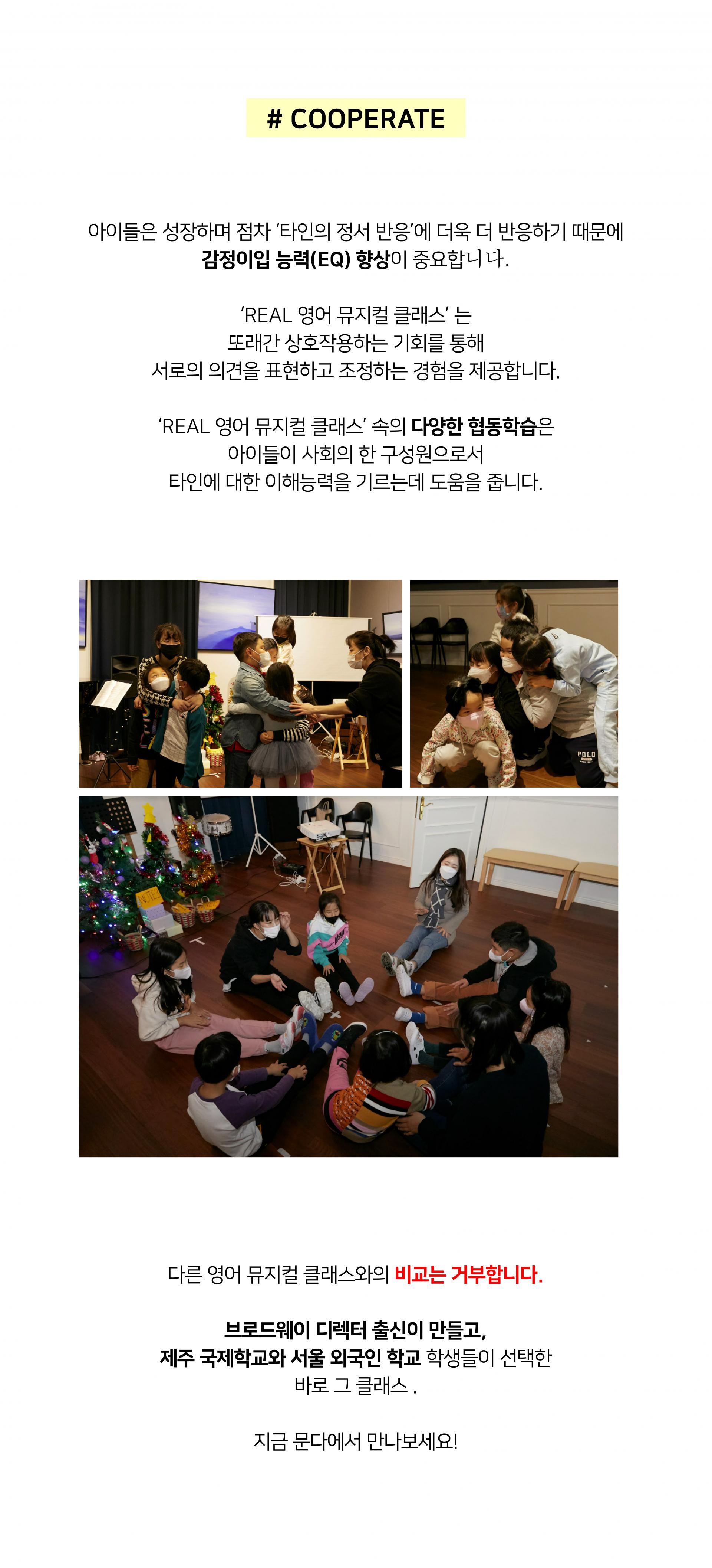 - 브로드웨이 뮤지컬 디렉터 출신 선생님이 현지 경험으로 개발하신 REAL 영어뮤지컬 클래스